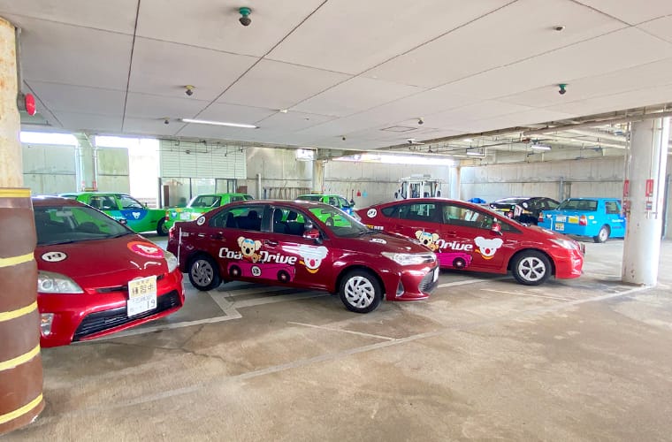 普通車は屋根のある駐車場に停めてあります。雨の日でも濡れることなく、教習車の乗降が可能です。