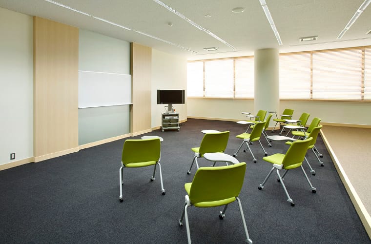 教室は天井を高く照明は学習に適した配置と明るさにこだわり、色彩鮮やかな空間で、学習効果の高い環境と提供します。