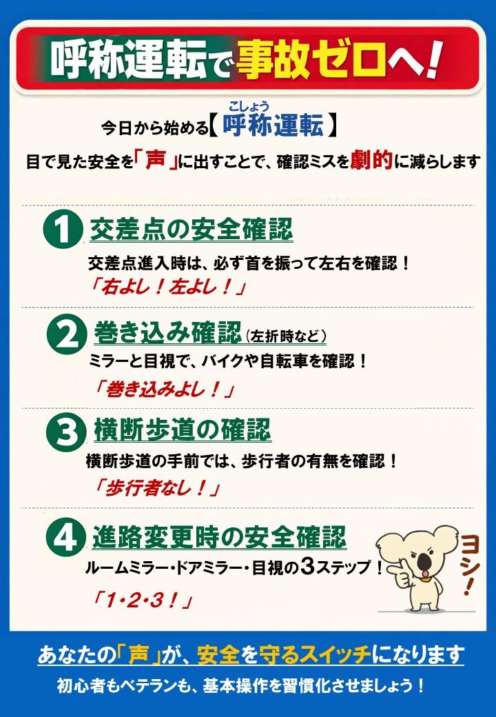 呼称運転とは、目で確認した安全行動を「声に出して確認する」ことで、